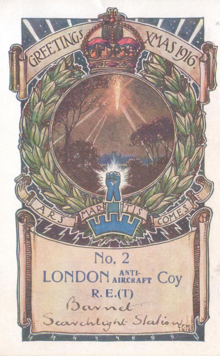 Also involved in the destruction of Zeppelin L31 on 1st October 1916 was the Hertfordshire based Barnet Searchlight Detachment. On the night in question they were crewing a specially equipped tram, painted in dark green, with a searchlight mounted on it. From their position outside Barnet church they were able to illuminate the raider during the course of the engagement thereby greatly aiding the work of Tempest as he attacked the airship. The men of the Barnet Searchlight Detachment were roundly praised by locals for their contribution to this important Herts based wartime episode. A letter of thanks written by the residents of Bedford Avenue provides an interesting insight into the event and the effect that a Zeppelin raid must have had on the local populous. You can read the letter here.
